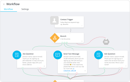 Our coordinated SMS, MMS, and email messaging ensures that your customer's journeys are perfectly orchestrated. This means you won't be asking the same question across different channels, and all responses are automatically coordinated.